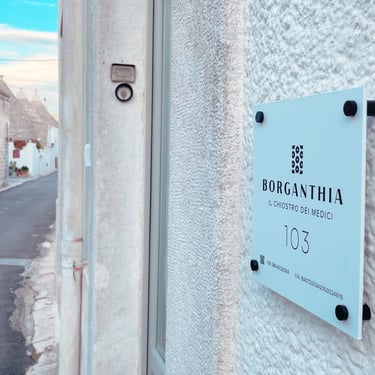 "A new concept of hospitality is born, BORGANTHIA - Il Chiostro dei Medici. Inspired by an idea of the founder, Il Chiostro dei Medici not only wishes to host you in its exclusive and independent Junior Suites but also, if you wish, to make you live an experience of unique sharing; in a context that smells of history and tradition with its stones and details finely brought to life. Adjacent to the Basilica Maggiore dei Ss. Medici and the Trullo Sovrano, in the Historic Residence you will find yourself immersed in a natural setting among olive trees and fruit trees, all in the heart of Alberobello; a combination difficult to find elsewhere. From here other Suites and Cummerse spread out into the main square.